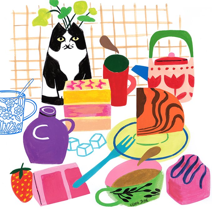 Happy Friday. Is it time for tea and cake? 🫖🍰#drawings #doodleart #illustrator #foodfriday #foodillustration #StillLife #surfacedesigner