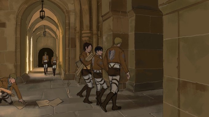 A day of Erwin & Levi - part 2 . #attackontitan #aot #erwinsmith #leviackerman #erwin #levi #fanart #afternoon #procreate #surveycorps #shingekinokyojin #medieval #street