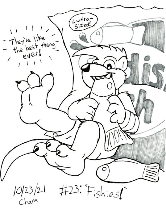 Inktober Day 23: "Fishies!" ❤️@Optlawyer How could I NOT draw Lutra enjoying himself when the prompt said the exclamation point was mandatory? #inktober2021 #otter #swedishfish