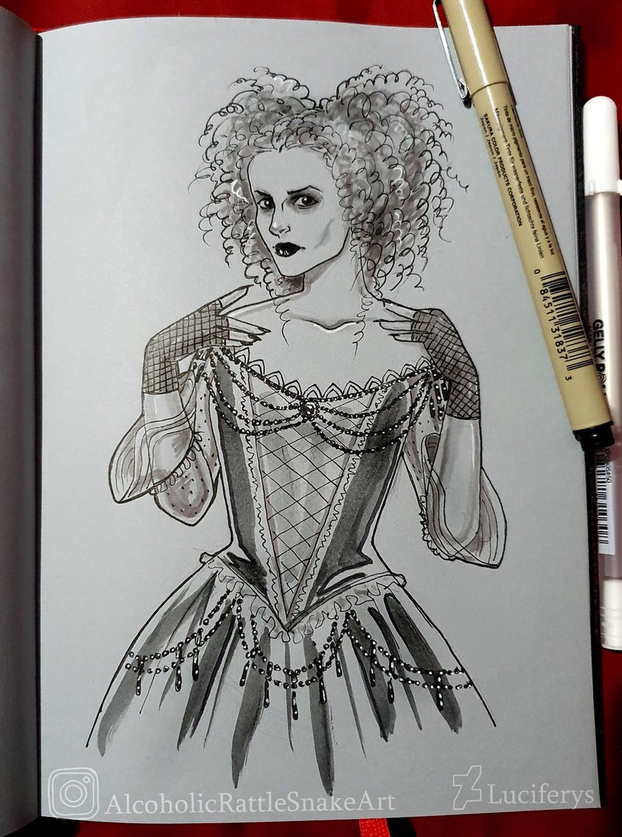 Inktober Day 30: Mrs. Lovett #mrsLovett #TimBurton #sweeneyTodd #sketchbook #art #drawing #inktober #inktober2022