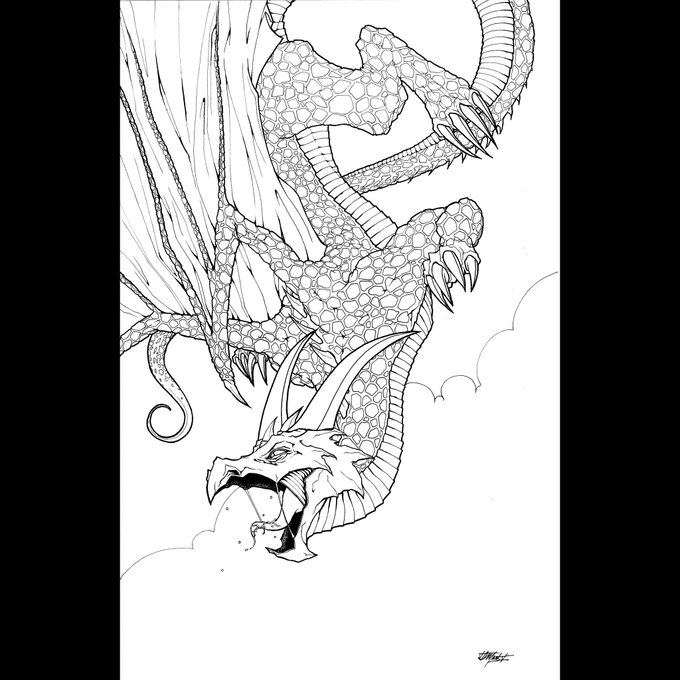 Day 12 - DRAGON! - "Swoop!" 11x17, ink on bristol. Who's a fierce swoopy boi? Original sold in Patreon pre-sale, see pieces a day in advance and get first dibs on originals - patreon.com/tortoiseharecr… #inktober #inks #inktober2019 #ink #dragon #inkdragon #swoop #inktoberdragon