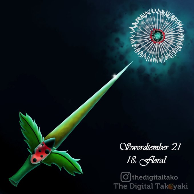 Swordtember 18: Floral The Garden Watcher El Vigilante del Jardín 庭の警備 #swordtember #Swordtember2021 #weaponconceptart #swordconceptart #illustration #drawing #digitalart #Dandelion #ladybug #ilustracion #artedigital #espada #イラスト #アート #剣 #イラスト好きな人と繋がりたい