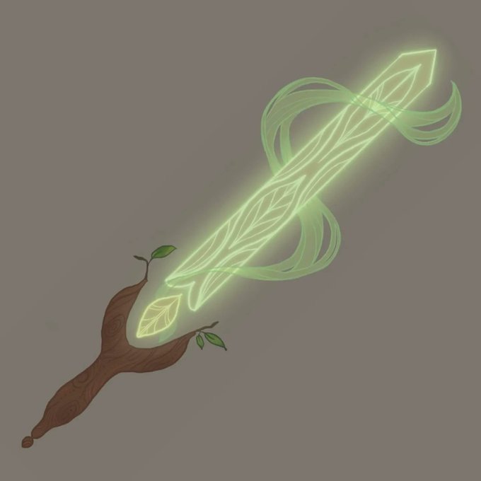 A sword intended for a druid or nature cleric! Any #dungeonmasters or #dndplayers have any suggestions for #homebrew attributes? - my entry for @faith_schaffer's #swordtember prompt #leaf - #swordtember2022 #sword #sworddesign #5e #dnd #dndhomebrew #druid #dungeonsanddragons
