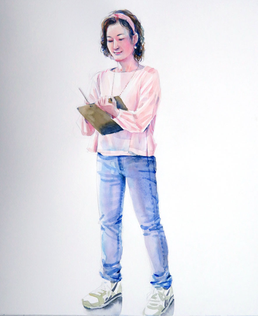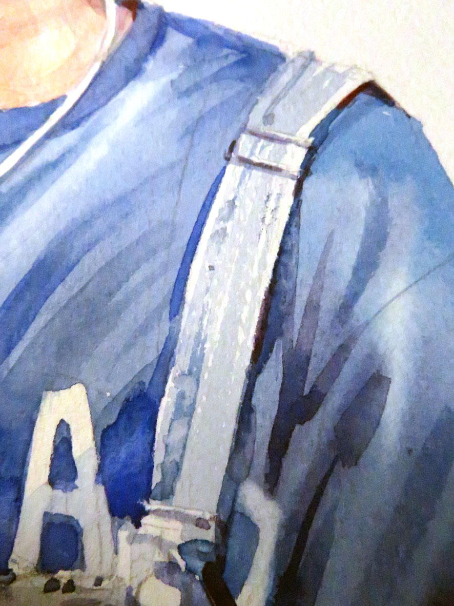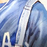 加筆してみました😆 デニムの質感を出すのにドライブラシでかすれたタッチを多用しています。全体像では見えにくいのでアップも並べてみました。 #水彩 #透明水彩 #watercolor #수채화 #へたっぴスケッチ爺さん #tクロッキー会