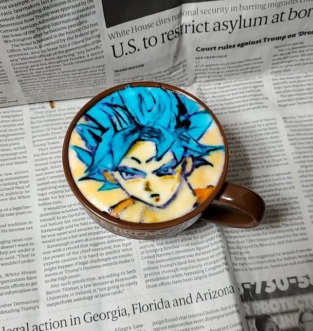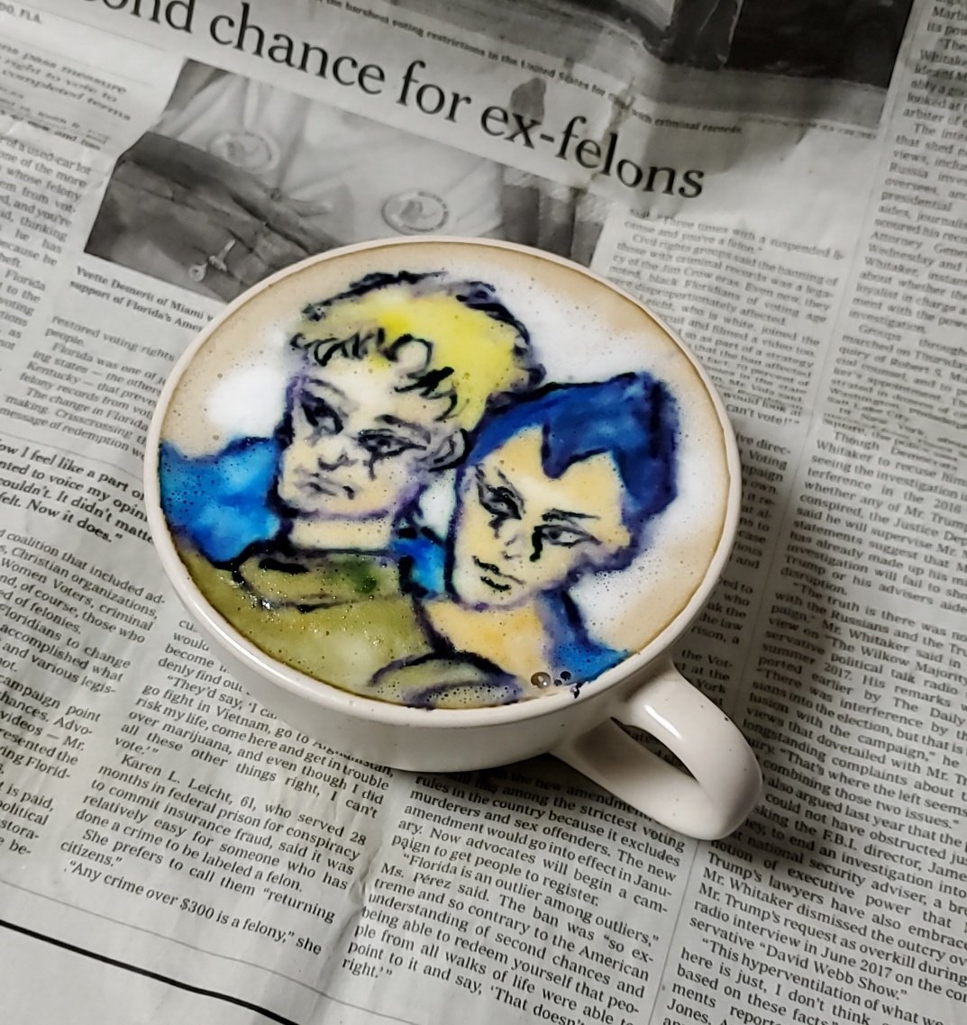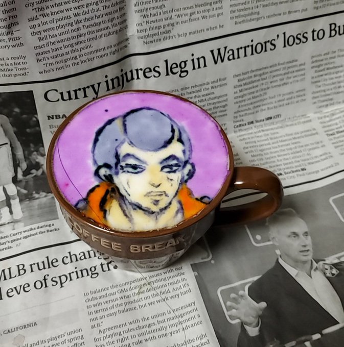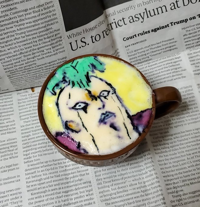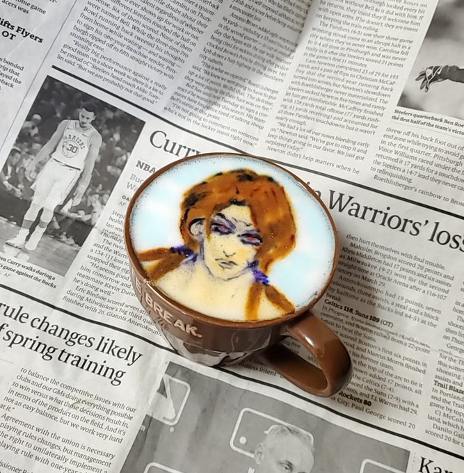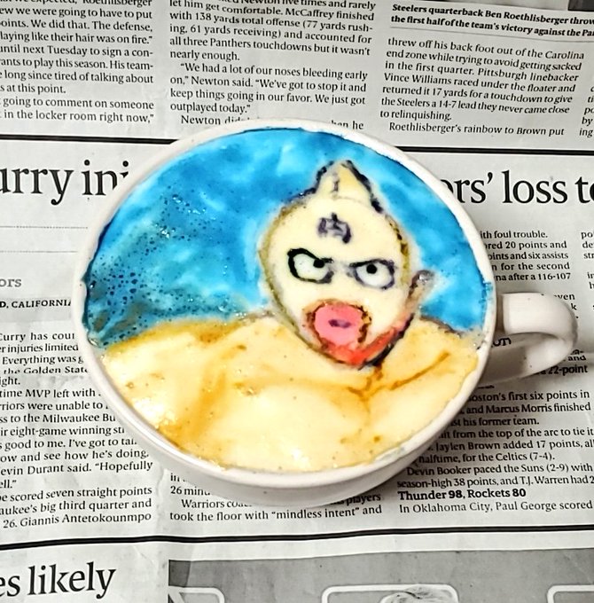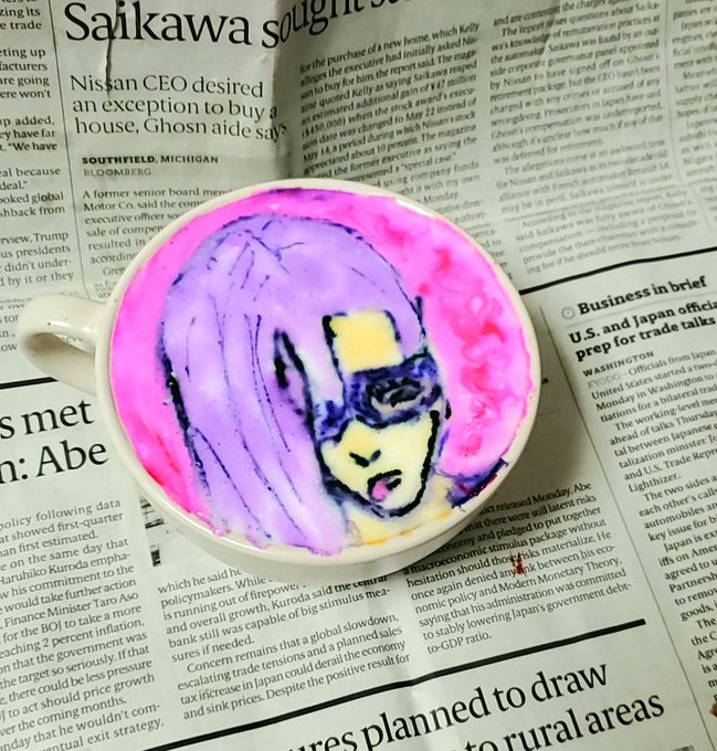 久しぶりのラテアートはハーレイ・クイン描いてみた☕🌀 背景色黒のが良かったかな… ジョーカーの髪色にしてみたんだけども… 今更ながらハーレイ・クイン可愛いなぁ💕 #t_latte #HarleyQuinn #SuicideSquad #ハーレイ・クイン #スーサイドスクワッド