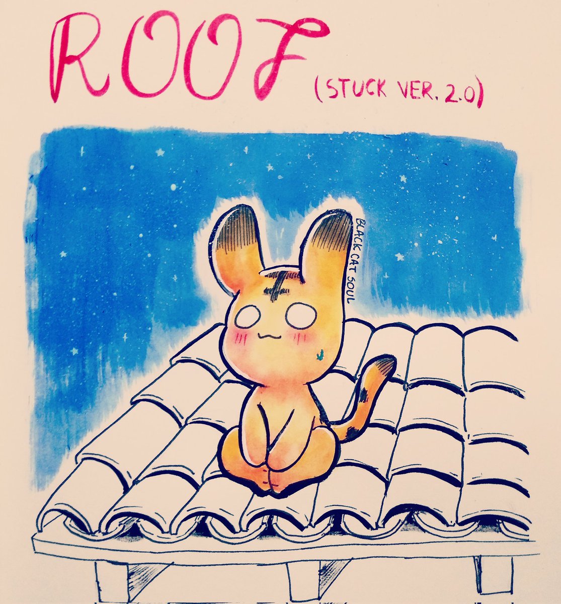 13. Roof Que hermosas están las estrellas está noche . . . #random #sketch #watercolor #ink #inktober #inktober2021 #inktoberwithtabby #tabbyrabbit #roof #stuck
