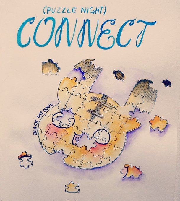 26. Connect Solo una relajante noche de rompecabezas . . . #random #sketch #watercolor #ink #inktober #inktober2021 #inktoberwithtabby #connect #tabbyrabbit