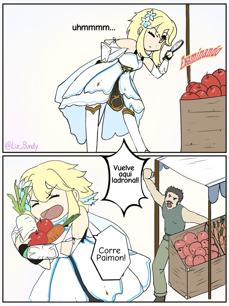Investigaré mejor estos vegetales en mi sartén :) #Lumine #Tabibito #Genshinlmpact #genshinimpactfanart #GenshinHumor #Viajero