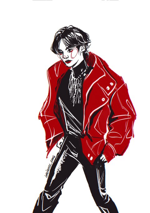 Fun little photo study! I love that red jacket omg what a statement #TAEHYUNGxCeline #TaehyungInParis