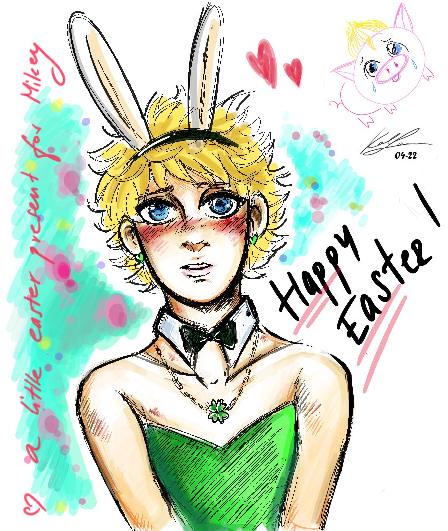 HAPPY EASTER FROM TAKEMICHI! Scribbled a little easter bunny at today's drawing session with @PuriPuddingArt . Turned out nice! And also there's a little piggymitchy in the right corner 🐷🍀❤️ #TokyoRevengers #TakemichiHanagaki #TokyoRevengersfanart #東卍FA #artistontwittter