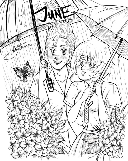 My final outlines for Takemichis and my birthmonth of June - for the very first fanmade Tokyo Revengers calendar @torevproject 🦋🌂 #東卍FA #tokyorevengers #takehina #takemichi #ArtistOnTwitter #drawing #tokyorevengersfanart #fanart #takemichihanagaki @ToRevGerman