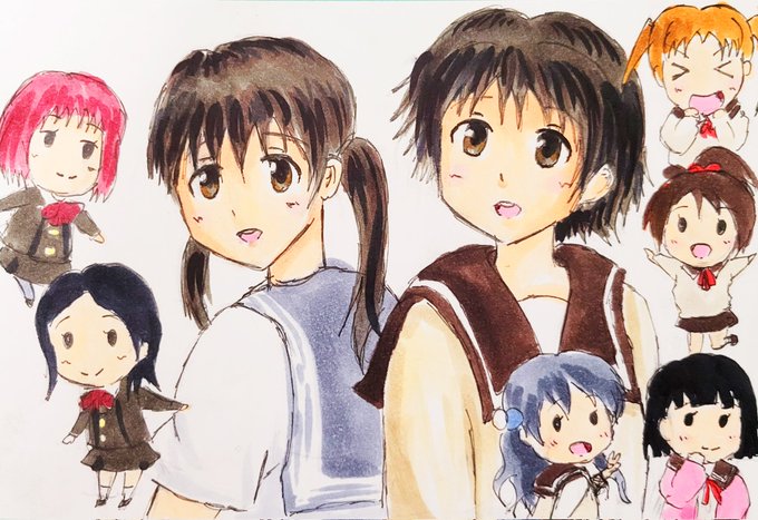 【みんなずっと一緒、なので。】 たまゆら同窓会、皆様お疲れ様でした!!エンカした方にのみ、私から配布していたイラストを改めて掲載。 手に取ってくださった方ありがとうございます!たまゆらーの皆さん、またいつか竹原で会いましょう… #たまゆら同窓会 #tamayura #絵描きさんと繋がりたい