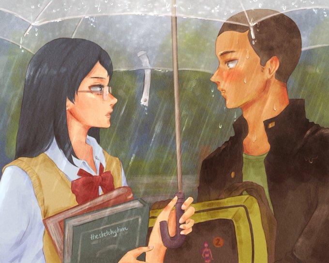 of rain and umbrella thieves ☔️ {1/2} turned my rain practice into a shoujo moment 🥺 #haikyuu #tanaka #kiyoko #sugawara #tanakiyo #procreate #digitalart #fanart