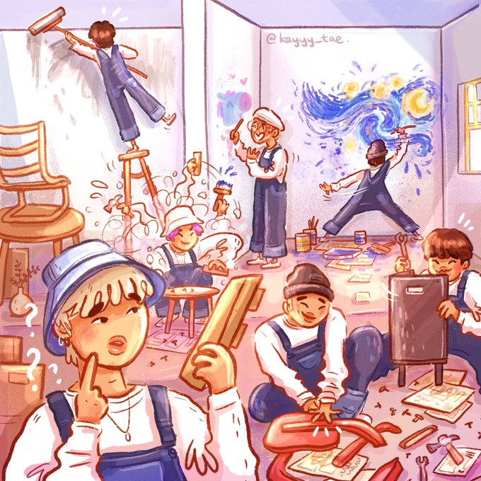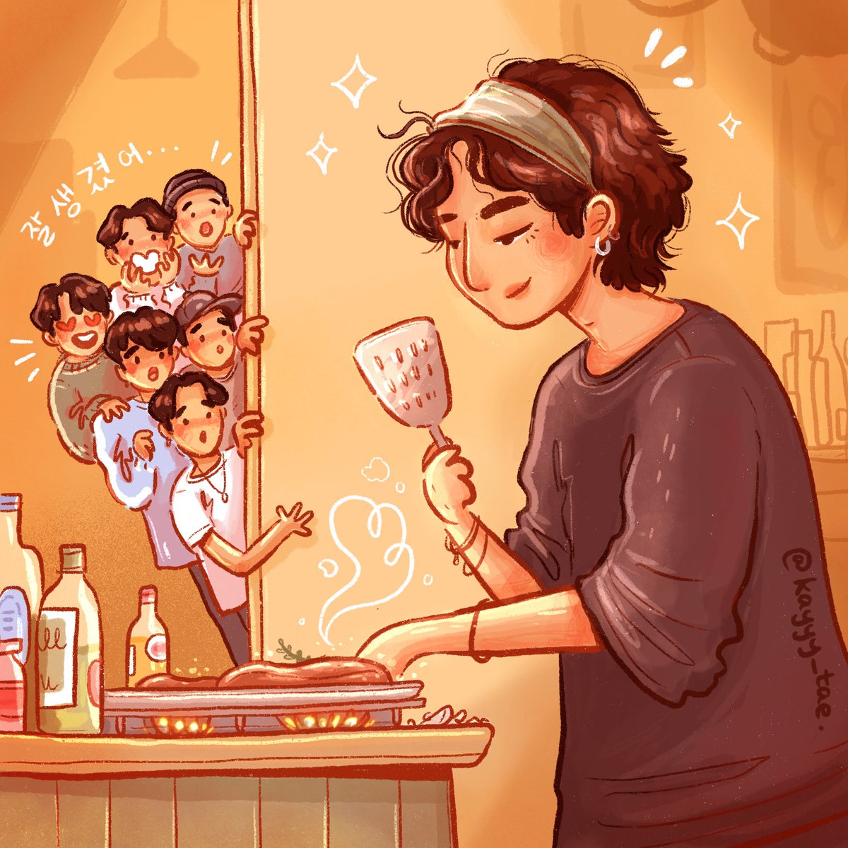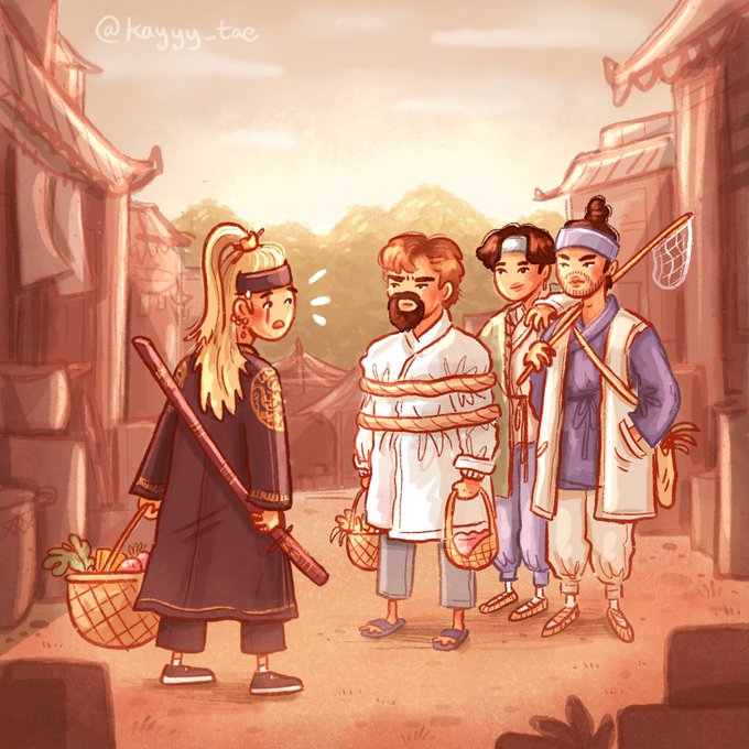 Day 22 : Costume An awkward early morning encounter at the market... (they were just trying to do their weekly shopping! 😂) #tantober21 #방탄소년단 #btsfanart