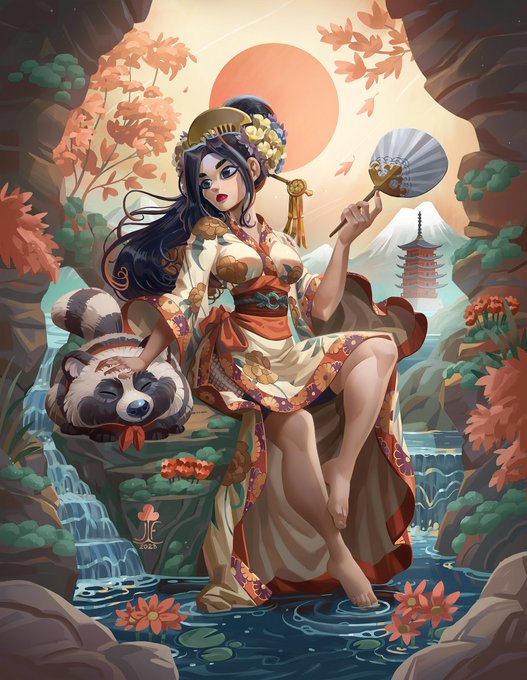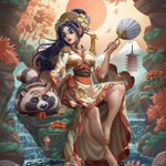 New illustration, a japanese girl with her faithful tanuki! 🏯🇯🇵⛩️ #characterart #characterdrawing #conceptart #tanuki