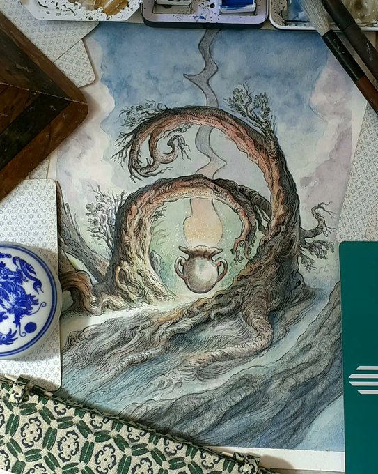 "The Searching". My painting for #everydayoriginal for the month of September. Watercolor, Inks and pencil. #tarot #tarotart #fantasyart