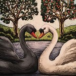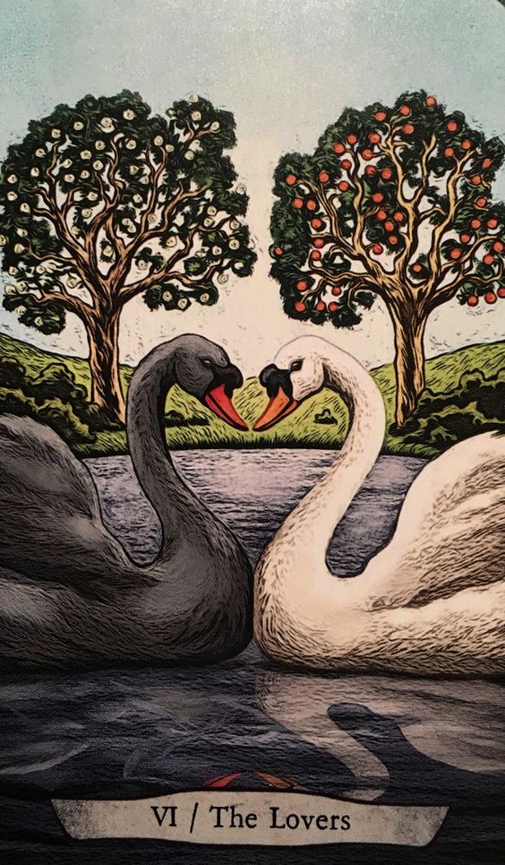 The Lovers ~ Swans from the Animal Totem Tarot by Leeza Robertson, artwork by Eugene Smith #eugenesmith #animaltotemtarot #thelovers #swans #swansillustration #illustration #tarot #tarotillustration #tarotart
