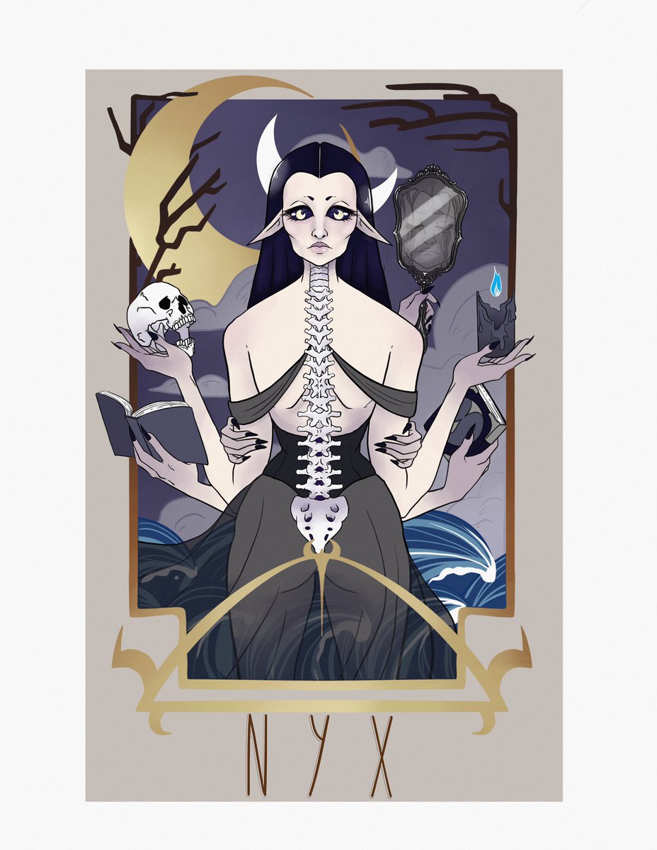 did up a new tarot for my gal Jacinth! she'll be getting a lil multiclass soon into the new blood mage in #TalDoreiReborn and I'm super excited to see how it combos with bloodhunter! 👀 #dndart #characterart #tarotart