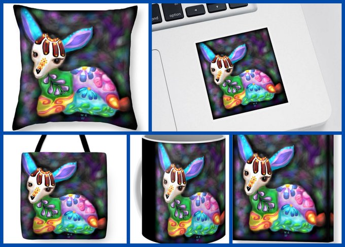 Talavera Style Deer printed on different products. Get it here: fineartamerica.com/featured/talav… My art shop: monica-resinger.pixels.com #buyintoart #talavera #deer #teal #green #blue #purple #floral #orange #flowers #SupportArtists #ArtistOnTwitter #painting #art #whimsical #colorful