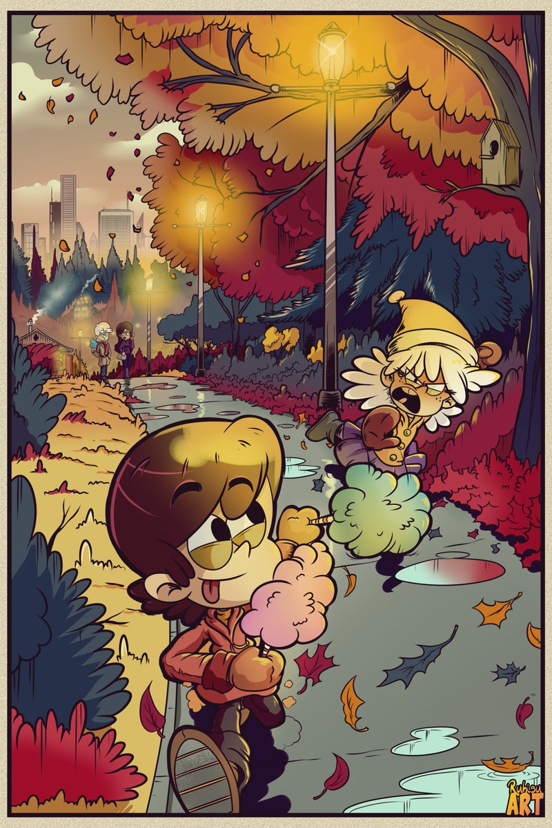 Fall colors 2 - Never take away your sister's sweets #TheLoudHouse #TheCasagrandes #LincolnLoud #RonnieAnneSantiago #LouisLoud #LizzyLoud #originalcharacter #family #park #autumn #city #cottoncandy #teasing #evening #running #fanart #myart #ruhisuART