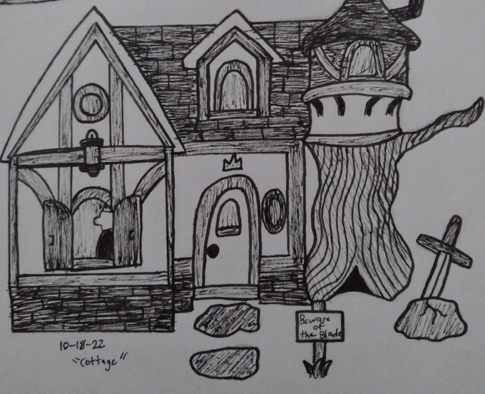 Technotober day 18: cottage . What i think c!technos cottage would look like when he retires . #Technotober #technoblade #technoart #technobladefanart #art #drawing #fanart #cottage #dsmp #dreamsmp