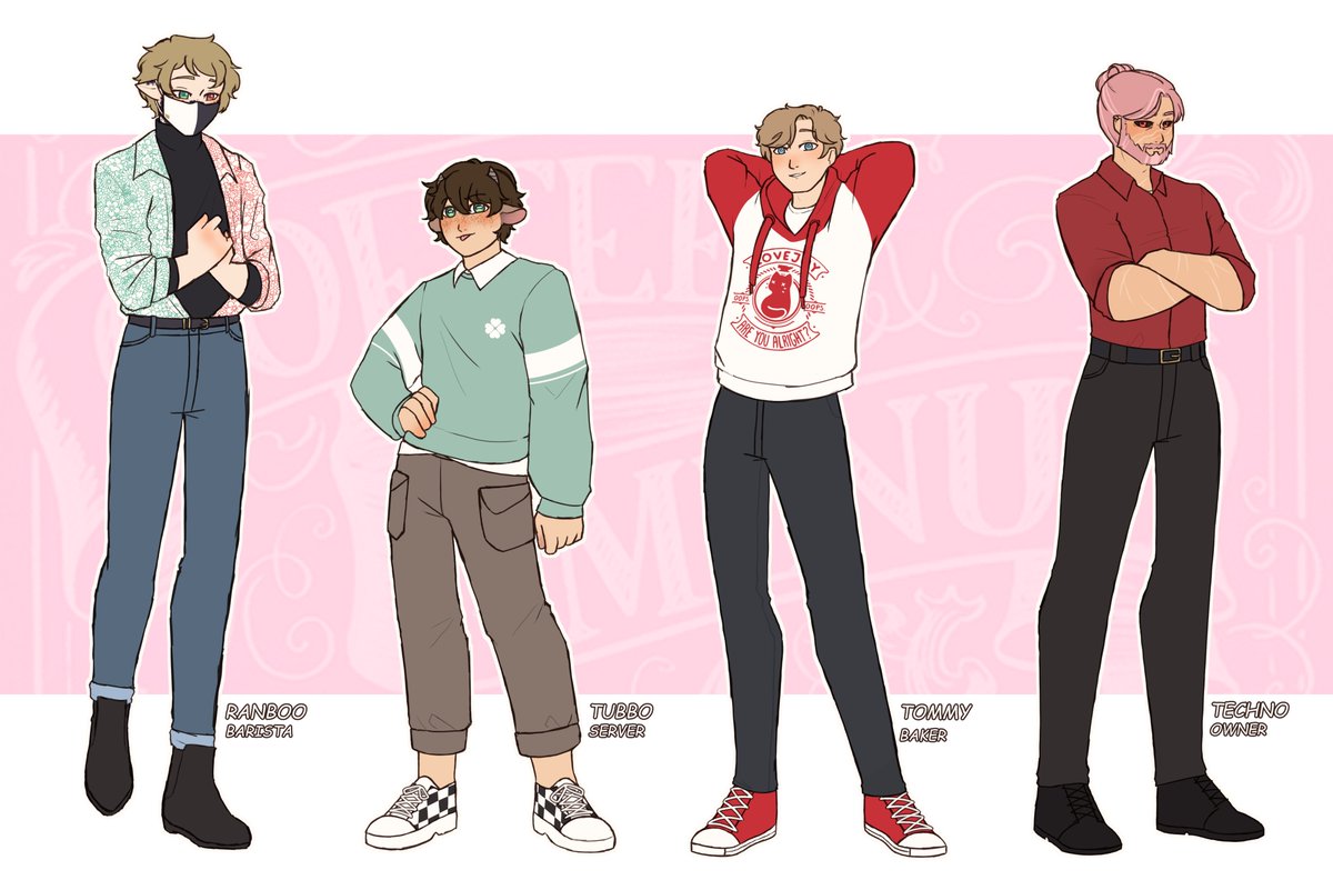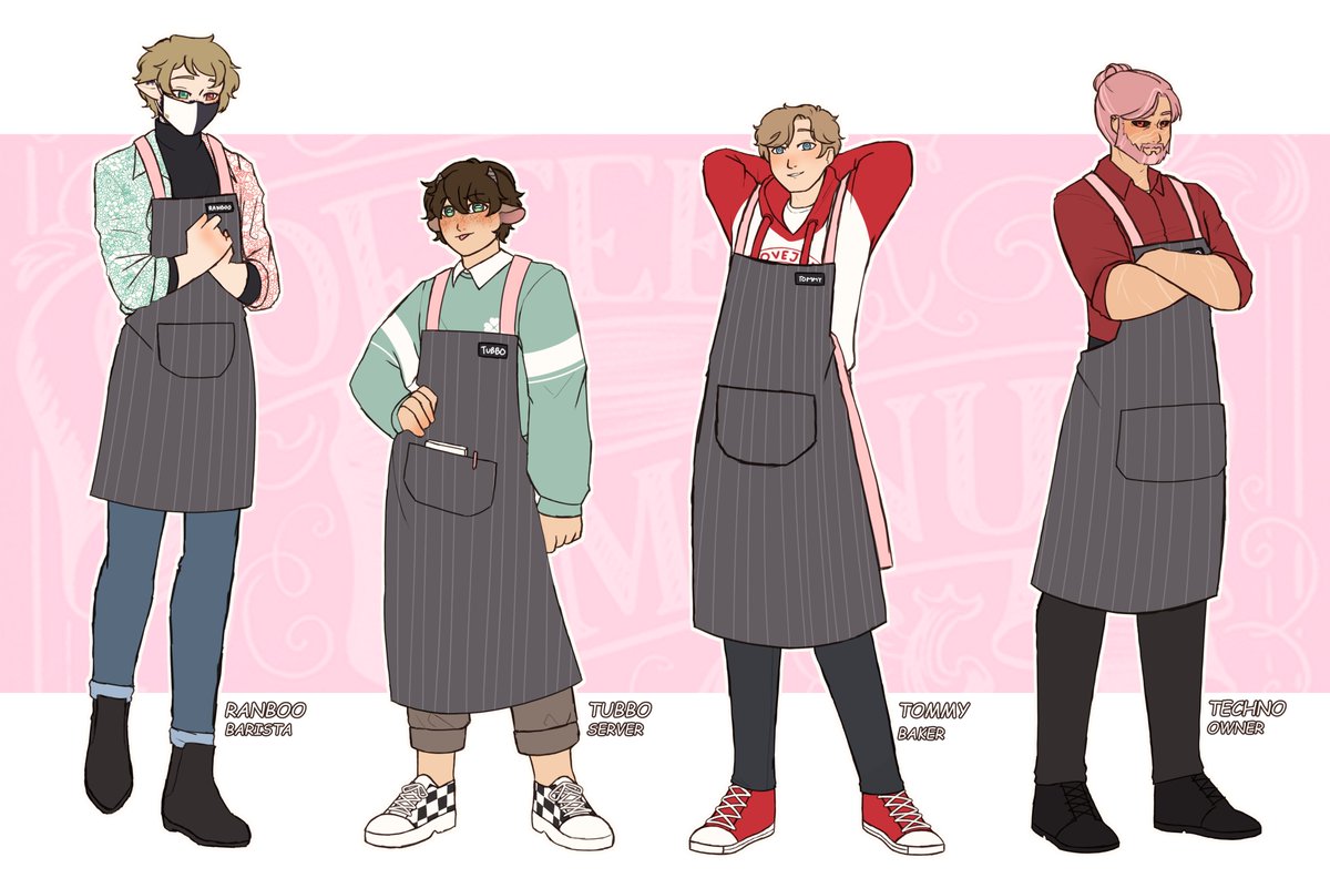 a perfectly normal coffee shop au 😉 (individual character refs soon!) #benchtriofanart #techofanart #ranboofanart #tubbofanart #tommyinnitfanart