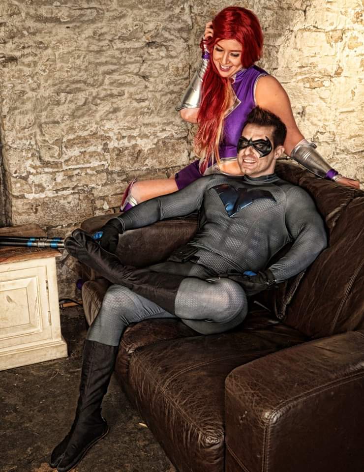 Down time before the next mission. with @foxybopcosplay as Starfire 💫🔥 Ph @alanaandrewphotography #cosplayers #picoftheday #me #fitness #comiccon #photo #fitfam #photographylovers #hot #fit #bodybuilding #dccomics #Nightwing #starfire #batman #titans #teentitans