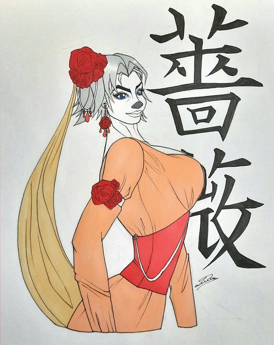 Oc Inktober : Day 3 : Rose Even a delicate rose coming along with a simple creme dress it shows the beauty of it. #鉄拳 #TEKKEN #tekkenoc #Inktober #inktober2021 #traditionalart #leechaolan