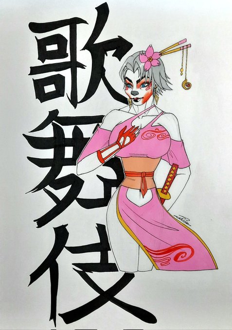 Oc Inktober : Day 20 : Kabuki Kabuki is a real art in the Japanese culture, Michelle Chaolan brings it in her clothing style to honor it. #鉄拳 #tekkenoc #TEKKEN #leechaolan #inktober2021 #Inktober #traditionalart