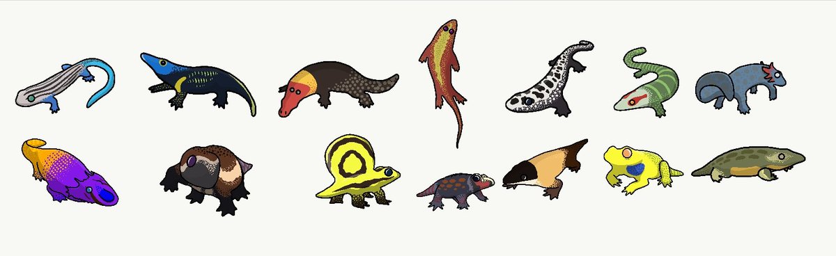 Well,week 3 of #temnovember2021 it's over,and now that we have a sizeable roster, i'll like to propose a question, as many of you probably have noted, most of temenos colorations are based on modern animals, so i ask do you recognize them all? Any favorites? :D #paleoart #sciart