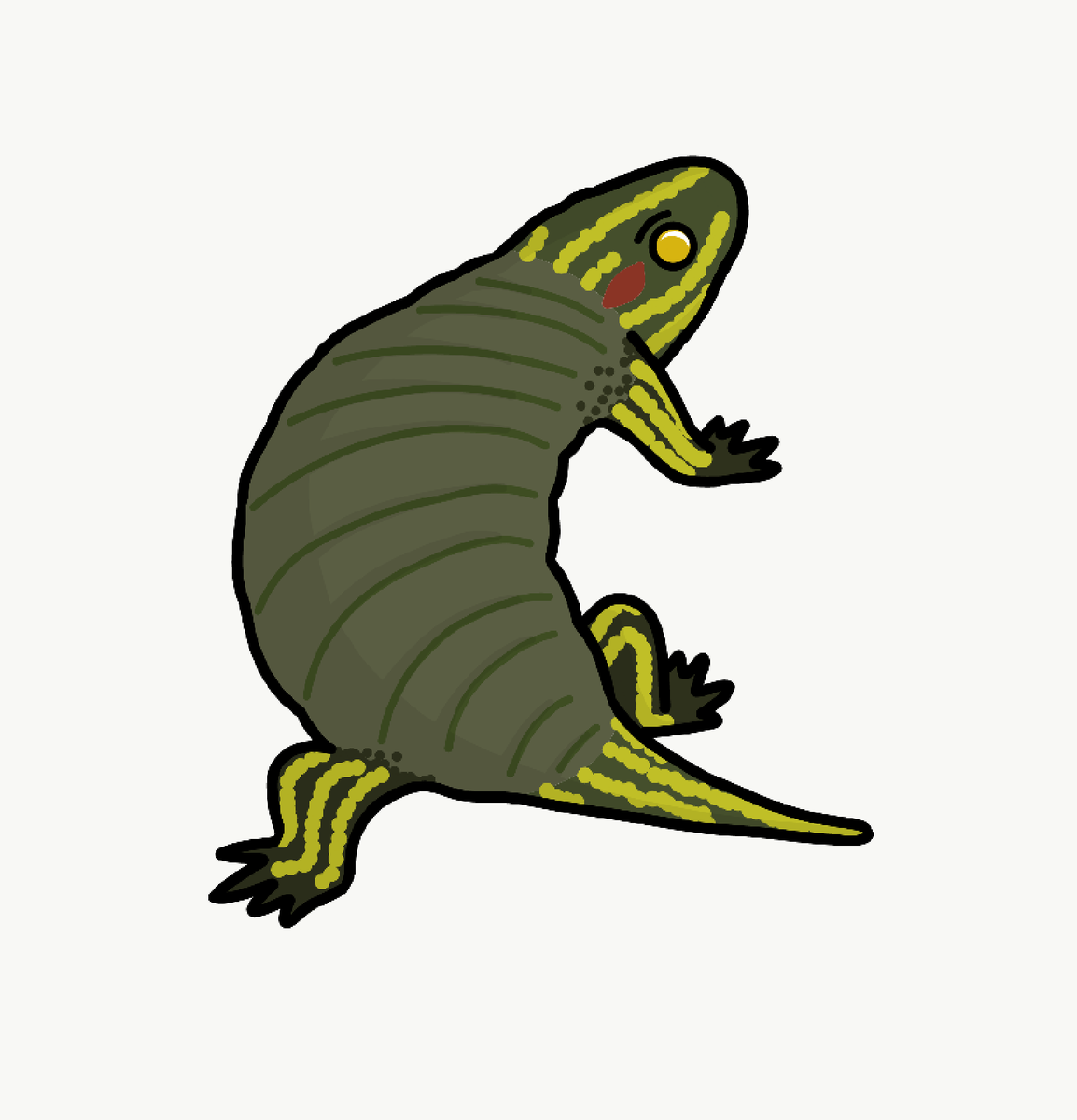 #temnovember2021 day 17: Peltobatrachus We arived to the seventeen of #temnovenber with one of the most basal stereospondyl, the armored frog of Tanzania, the late permian #Peltobatrachus #paleoart #sciart #amphibian #temnospondyl #permian