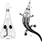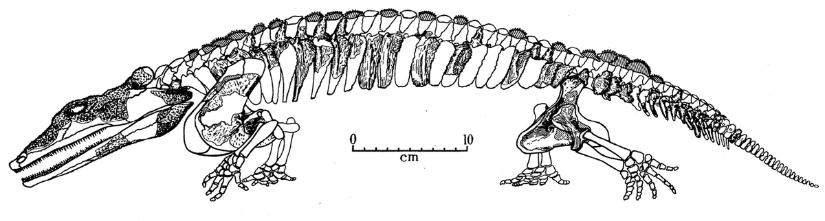 #temnovember2021 day 25: Aphaneramma Comming from day 25 of #temnovember, we have the sea dweller from all over the coast of Pangea, the gharial mimic, #Aphaneramma, from the early triassic of pretty much half of the world #paleoart #sciart #amphibian #temnospondyl #triassic