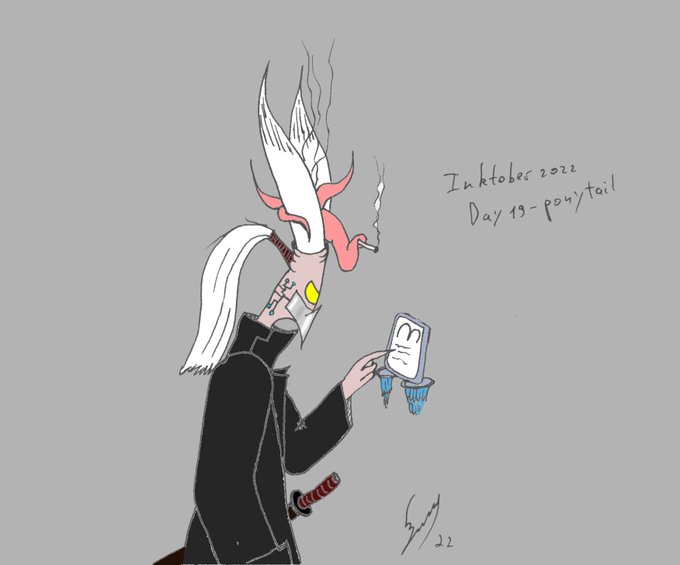 "An eldritch demon cyberpunk samurai ordering a burger" is a sentence I never expected to write. Yet here we are. #inktober #inktober2022 #inktober2022day19 #inktober2022ponytail #ponytail #cyberpunk #demon #samurai #eldritch #tentacles #shai