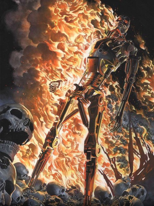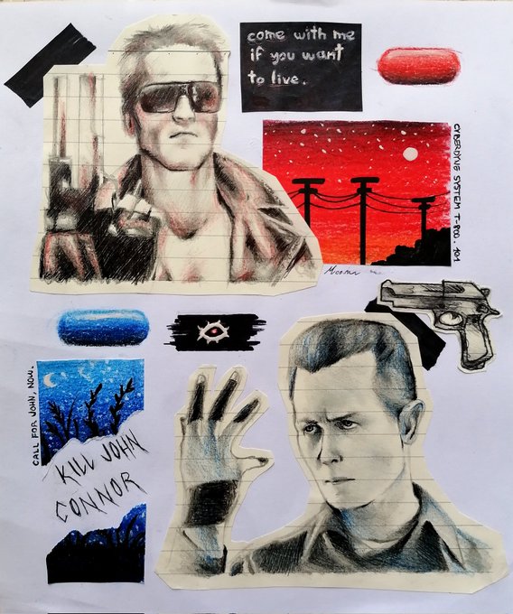 "El Terminator está ahí fuera. No se puede razonar con él, no siente lástima, ni remordimientos, ni miedo. Y no se detendrá ante nada hasta que estés muerta". #artistsontwitter #Terminator