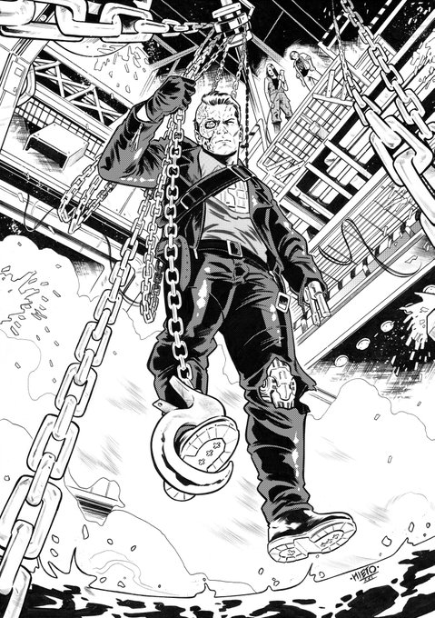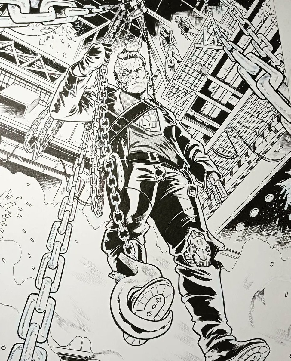 Quand c'est l'heure de la chialade (ou de la fondue) #inktober2022 #inktober2022day13 #inktoberday13 #Kind #fanart #traditionalart #ink #90smovies #Terminator2 #t800 @Schwarzenegger
