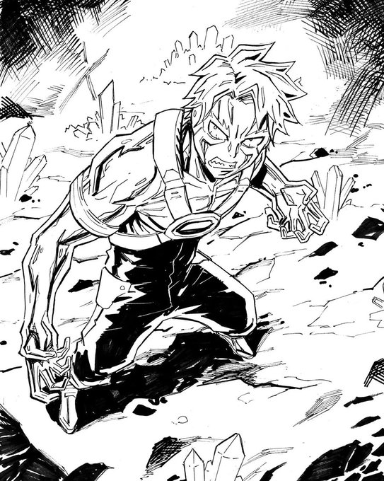 Inktober 2021 is upon us!! So let's get this rolling. The first prompt is crystal, so we did Real Steel from My Hero Academia, also there are some crystals in the background. #realsteel #tetsutetsu #tetsutetsutetsutetsu #inktober #inktober2021 #artober