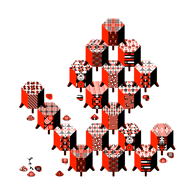 貝桶(雛祭りの貝合せの貝ボックス!) kaioke / pixel traditional shell bucket with crazy stripes #貝桶 #貝合 #貝合わせ #雛祭 #雛祭り #クレイジーストライプ #crazystripes #textiledesign #pixelart #graphicdesign #contemporaryart #ten_do_ten 1109 weeks / tententen.net
