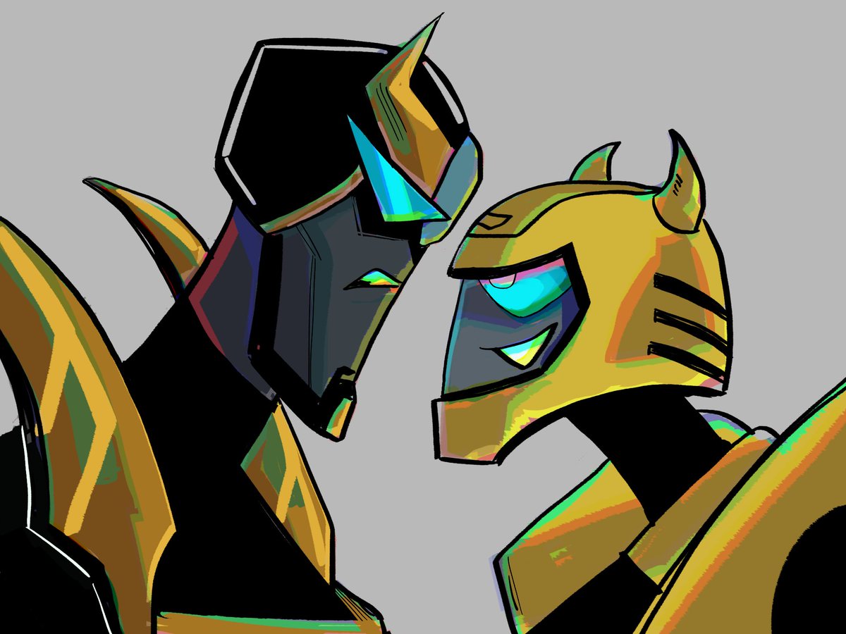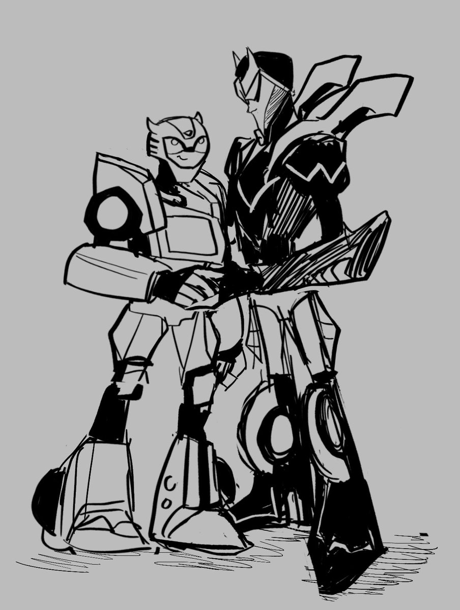 these two are my favorites. prowl is really hard to draw 😹 #tfa #transformersfanart #tfaprowl #tfabumblebee #prowlbee