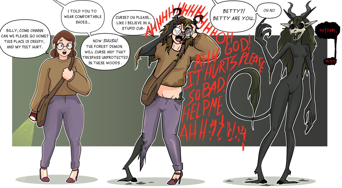 Hi hi and good morning on day 16 of #tftober ! Today I've got that age old tale of don't go in the cursed woods or the demons will get ya. Also wear sensible shoes when hiking. Enjoy and don't forget to #TFEveryday #transfur #Furryartist