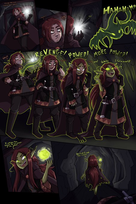 A small comic about the origin of the wisard goblin, hahaha I really what to draw something abaut this goblin. #tgtransformation #TGTF #feminizacion #Goblin #goblingirl #MonsterGirls