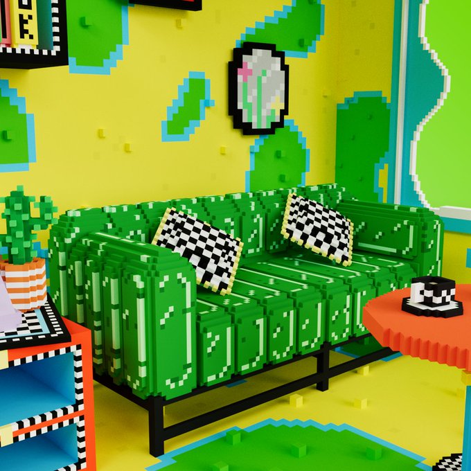 Who can resist bubble sofa? Let art all around us. #3dmodel #3drender #Blockchain #CryptoArt #CryptoVoxels #DigitalArt #Indiegame #Lowpoly #Metaverse #NFT #NFTArt #NFTCommunity #NFTs #PixelArt #Play2Earn #TheSandbox #VideoGames #VirtualWorld #Voxedit #VoxelArt #Voxel