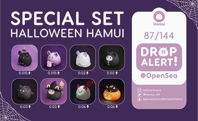 Special Drop! 🎉 Halloween Hamui Set DROP ALERT on 13 OCT. [ Drop at 10.00 PM UTC+7] 87/144 on OpenSea !🔽 opensea.io/collection/ham… Hope u like it !🥰 RT and follow if u love Hamui ❤🙏 #NFTartist #NFT #NFTCommunity #opensea #3D #ThaiNFT #NFTs #Halloween #Hamui