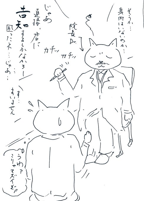 猫サラリーマンシリーズ15 最終面接 #2コマ #イラスト #猫 #サラリーマン #就活 #面接 #非常口 #社長 #採用 #なんかいろいろ #不安 #イラスト好きな人と繋がりたい #猫好きさんと繋がりたい #漫画の読めるハッシュタグ #絵描きさんフォロバ100 #thanks