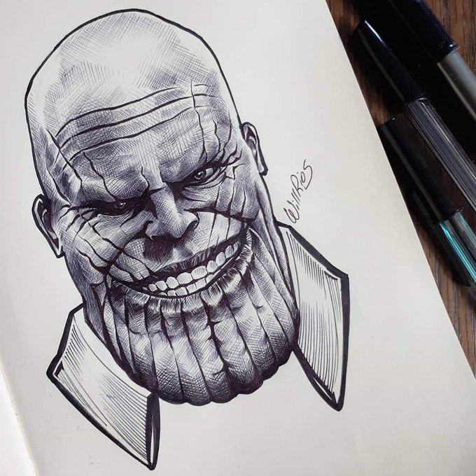 Mês de #inktober mas ainda não consigo participar. Vai me restar fazer um ou outro, repostar antigos e admirar o trabalho de meus amigos artistas! Ps: esse #Thanos é um dos antigos. #inktober2022 #drawing #sketchbookart #ink #inkart #ballpenart #WillRios