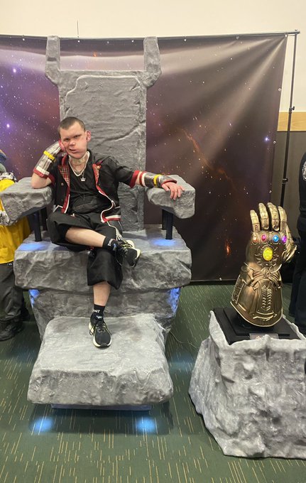 The other day at the Con, I got a photo on Thanos’s throne doing Sora’s throne pose from Kingdom Hearts 3. #KingdomHearts #Disney #Sora #ComicCon #Marvel #Avengers #Thanos #Costume #Costumes #Cosplay #Cosplays #Cosplayer #Cosplayers