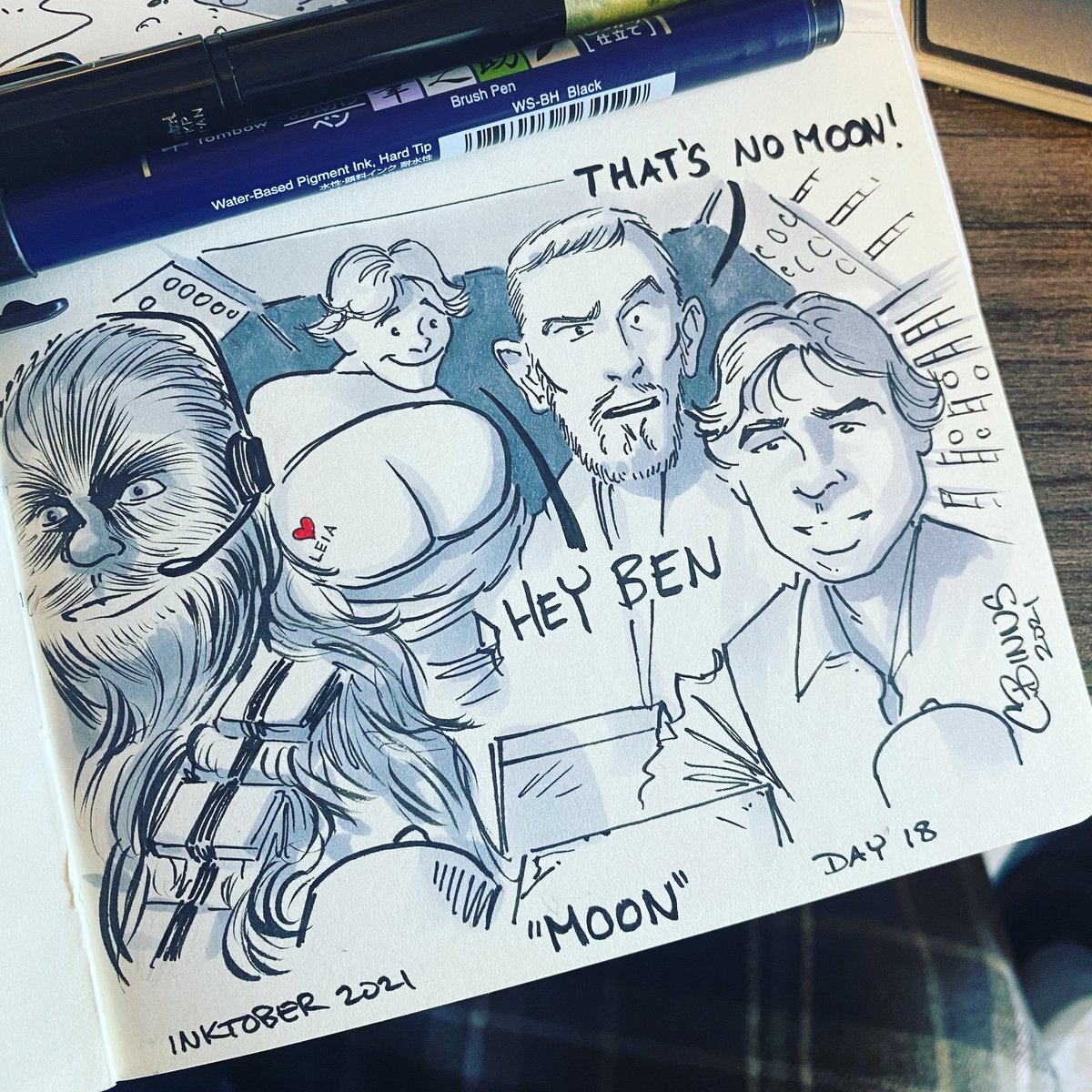 Luke with some ill-timed shenanigans. #ThatsNoMoon. #inktober today with a different kind of moon. . . . #inktober2021 #inktoberprompt #inktoberday18 @inktober #comic #funny #starwars #fanart #drawing #doodle #sketch #myart #cartoon #artist #art #illustrationartists
