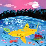 Thresher shark in shallow waters under a night sky. There are roughly 520 shark species and losing sharks can disrupt the delicate ecosystem balance that they help maintain #the100daychallenge #ourbeautifulplanet #sharks #illustrators #blueplanet #WWF #artillustration #kidlitart