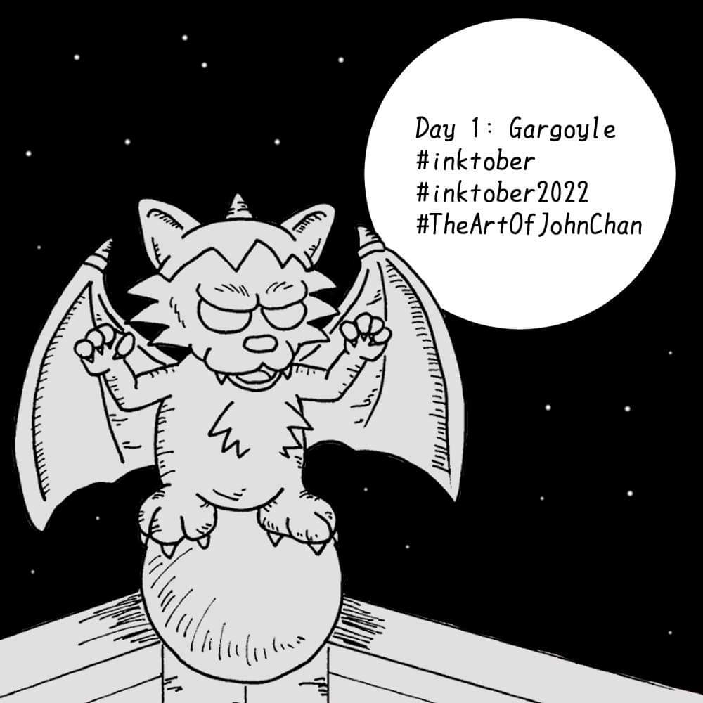 Inktober October changelle Day 1: Gargoyle #陳莊繪本 #theartofjohnchan #doggy #doodle #drawing #art #cartoon #comics #manga #illustration #artwork #marker #mangadrawing #comicsdairy #portrait #chibi #inktober #inktober2022 #gargoyle