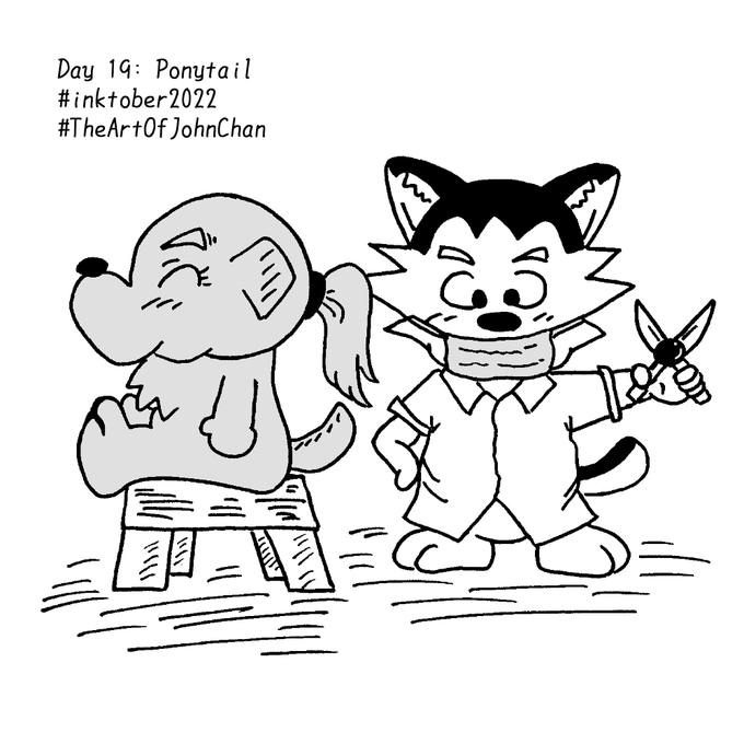 Inktober October changelle Day 19: Ponytail #陳莊繪本 #theartofjohnchan #dog #doodle #drawing #art #cartoon #comics #manga #illustration #artwork #marker #mangadrawing #comicsdairy #lineart #fanart #rkgk #cosplay #artchallenge #inktober #inktober2022 #ponytail #inktoberponytail