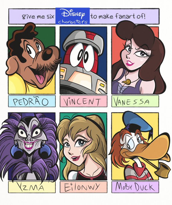 Hey there! I've been a little busy with life lately, so I'm trying to do more art. Just sharing this Six Disney Characters Fanart challenge, it was a lot of fun to draw! #SixFanarts #disneyfanart #theblackhole #thelittlemermaid #emperorsnewgroove #theblackcauldron #disneycomics